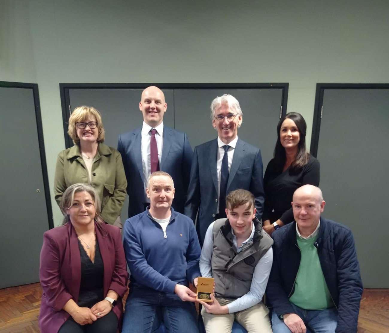 I was contacted by my previous school principal from St. Colemans College, who informed me that I had won the award and explained that it would be presented to me by Ciaran Conlon at the prize-giving ceremony. Hearing the news was a real surprise and made the achievement feel even more special, especially knowing it would be recognised in front of others at my old school.