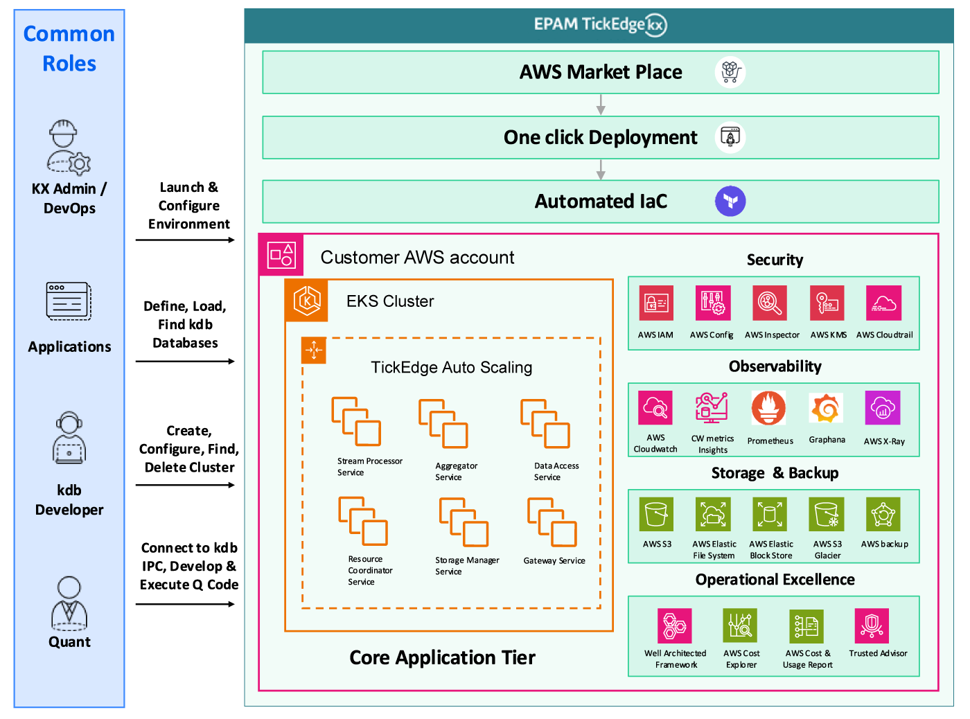TickEdge Service & Accelerator for KDB-X on AWS enables teams to get up and running in minutes with preconfigured defaults, automation, and extensibility. It supports rapid development, our tailored configuration, and a seamless transition to managed, production-grade environments.​